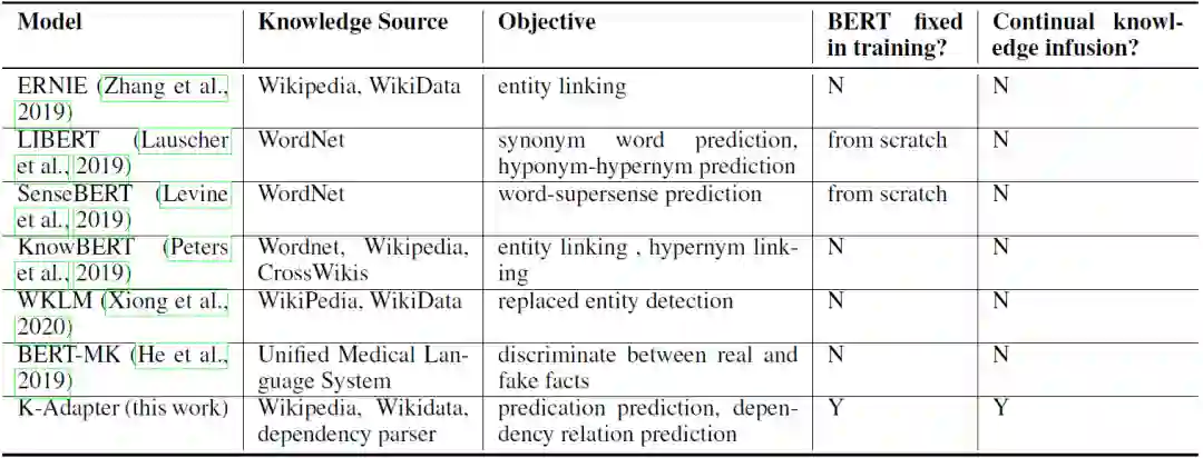 [11]Ruize Wang, Duyu Tang, Nan Duan, Zhongyu Wei, Xuanjing Huang, Jianshu Ji, Guihong Cao, Daxin Jiang,and Ming Zhou. 2020b.K-adapter: Infusing knowledge into pre-trained models with adapters.CoRR,abs/2002.01808.