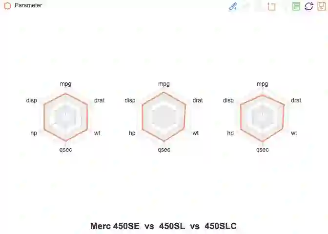 echartr(cars, indicator, Parameter, facet=model, type='radar') %>%