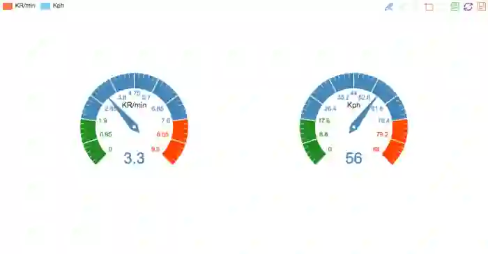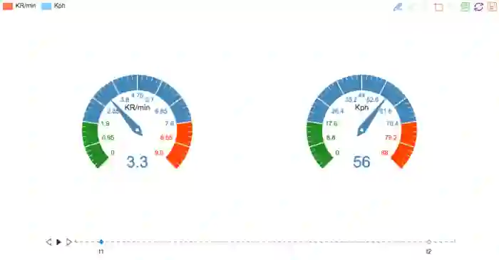 data = data.frame(x=rep(c('KR/min', 'Kph'), 2), y=c(3.3, 56, 9.5, 88),