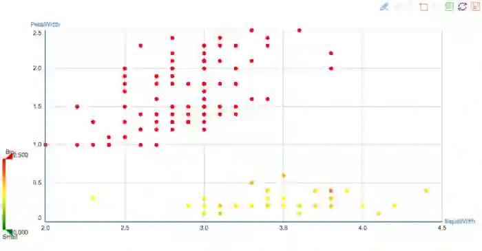 echartr(iris, SepalWidth, PetalWidth, weight=PetalLength) %>%