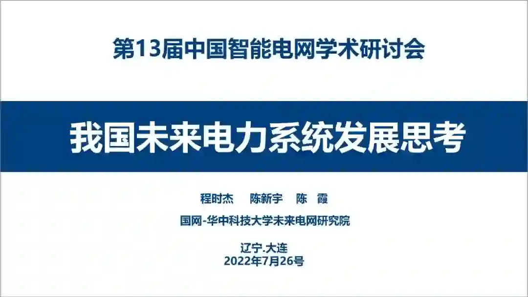 中国科学院院士、华中科技大学教授程时杰在第13届中国智能电网学术研讨会上作了题为“我国未来电力系统发展思考”的专题报告,征得专家同意,在此分享报告PPT,欢迎品读。
