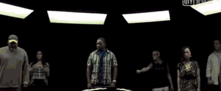 结果就在小女孩刚踏出红圈被电击的一刹那,黑衣男抬起手来,把票投给了孕妇。