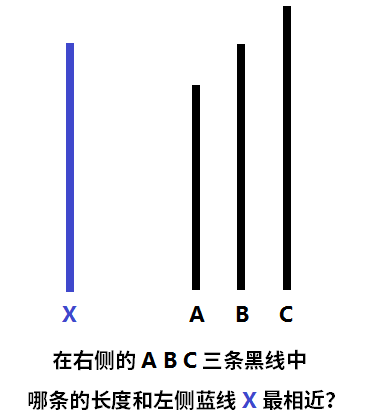 来看看这个假惺惺的视觉测试题:只要你视力没问题,谁都知道正确答案是 “黑线 B 和蓝线 X 长度最相近”。