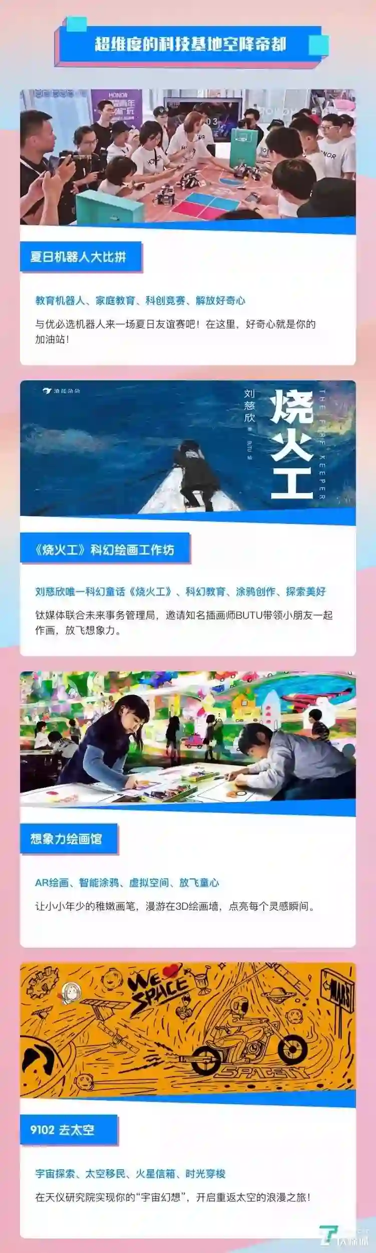 在这次2019钛媒体T-EDGE科技生活节上,汇聚30+科技互动伙伴,【科幻工作坊】、【AR绘画馆】、【机器人大赛】、【家庭亲子教育】、【水下黑科技】、【科学小实验】、【科技潮品SHOW】......等你来体验。