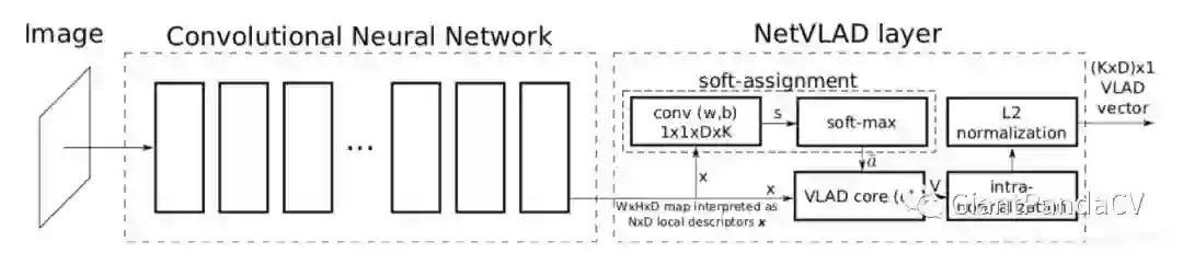 原论文中采用将传统图像检索方法VLAD进行改进后应用在CNN的池化部分作为一种另类的局部特征池化,在场景检索上取得了很好的效果。