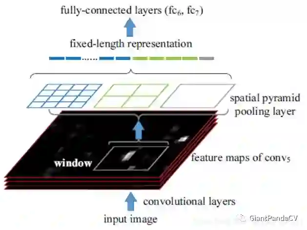 SPP是在SPPNet中提出的,SPPNet提出比较早,在RCNN之后提出的,用于解决重复卷积计算和固定输出的两个问题,具体方法如下图所示: