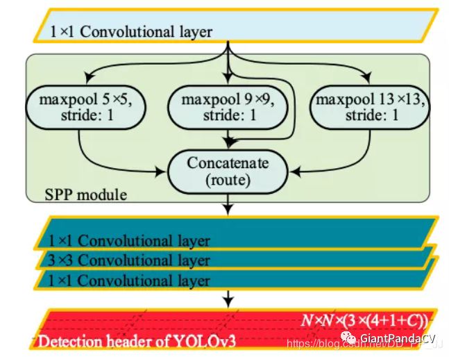 出现检测效果提升的原因:通过spp模块实现局部特征和全局特征(所以空间金字塔池化结构的最大的池化核要尽可能的接近等于需要池化的featherMap的大小)的featherMap级别的融合,丰富最终特征图的表达能力,从而提高MAP。