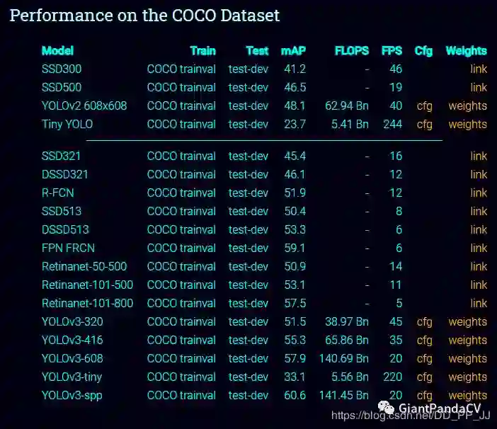 再来看一下官方提供的yolov3和yolov3-spp在COCO数据集上的对比: