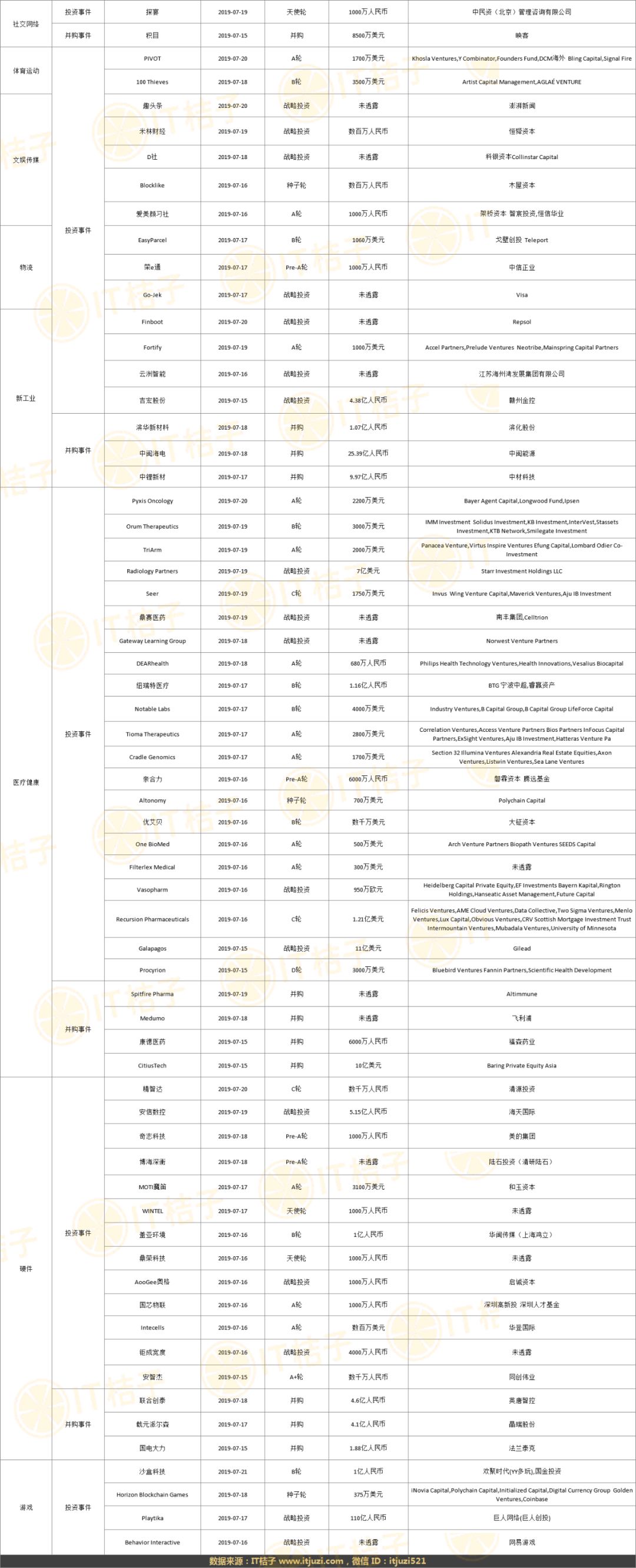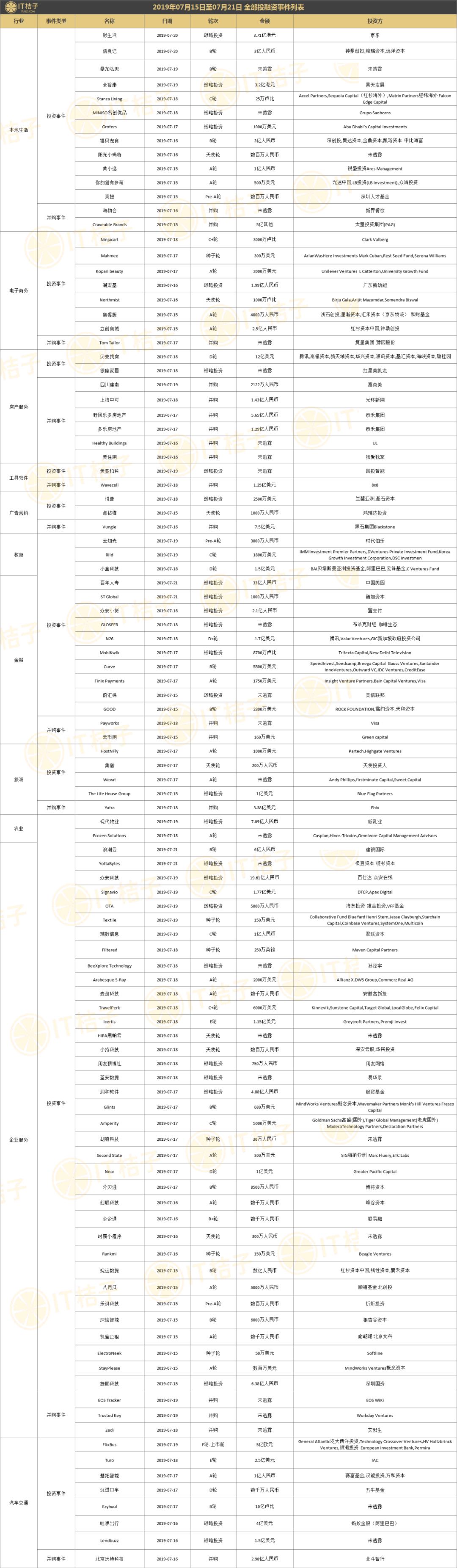 上周全部投融资事件列表: