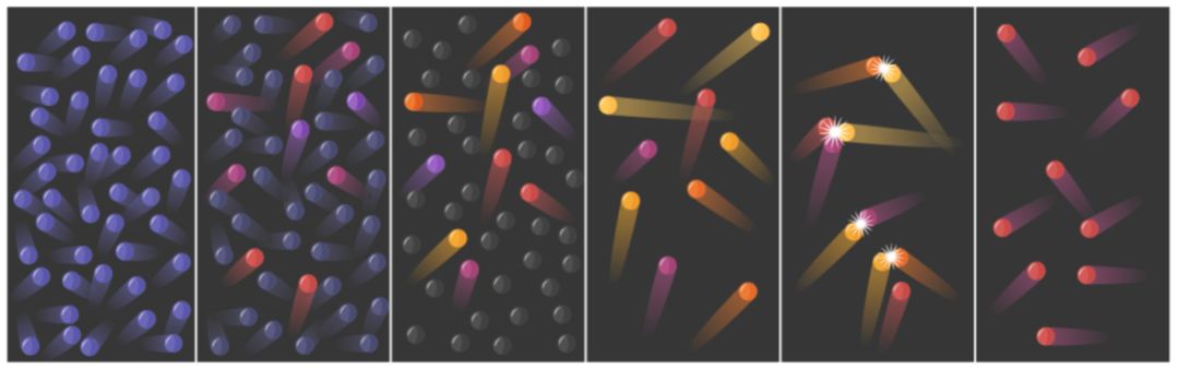 热化:运动的粒子分散开来,不断进行能量分配直到平衡