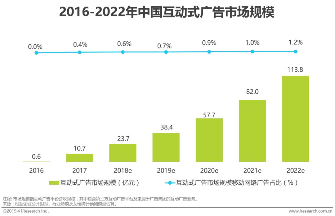 艾瑞分析,随着中国网络环境和媒体环境的变化,广告主对广告投放的ROI要求越来越高,媒体对于流量变现的需求也愈加强烈,同时基于用户自身媒介素养的进化,其对广告的要求也在不断提高。在此背景下,互动广告的出现很大程度上解决了各方的痛点,一方面其基于良好的互动体验获得用户的关注,也为广告主争取了更多的停留时间和更大的转化效果;另一方面,其基于对已有广告资源的二次开发,进一步扩大了媒体方的广告变现空间。综上可以看出,互动广告在未来还有很大的发展空间。