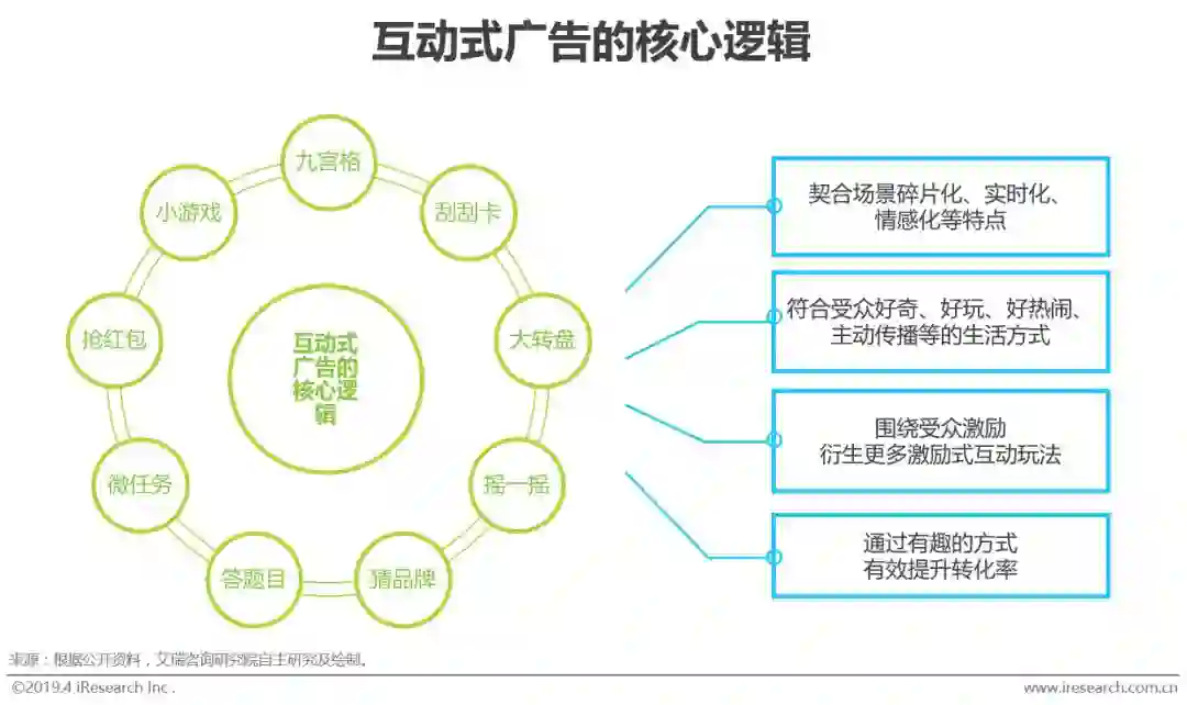 互动广告具备较高的营销价值具体体现在:1)契合场景碎片化、实时化、情感化特点;2)与现代受众的好奇心理、主动传播、多向互动的生活方式和生存状态相契合。所以在互动式广告发展过程中,围绕受众激励这一营销逻辑,衍生出更多激励式互动玩法。这些互动玩法以有趣的方式,有效提升了营销活动的转化。