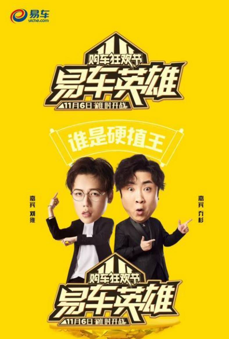 除了推出黑科技产品,易车还自制了极具娱乐传播性的综艺节目《易车英雄》(同样是行业首次,看来易车特别注重首发优势),同时邀请汽车大咖联盟参与购车节服务。