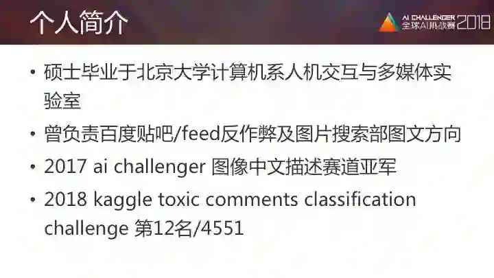 来自 AI Challenger 2018 细粒度情感分析赛道冠军阁子大神的PPT分享,已获得阁子大神授权,更多细节可以关注后续AI Challenger官方的冠军分享活动。