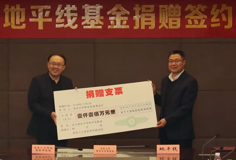 2018年11月6日上午,南京大学地平线基金捐赠签约仪式在南京大学仙林校区举行。南京大学副校长薛海林与地平线创始人&CEO余凯及南京人工智能高等研究院执行院长吴强签署了三方捐赠协议,南京大学校长吕建携南京大学发展委员会、物理学院、电子科学与工程学院、人工智能学院等院领导出席见证。
