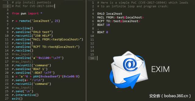 此为可造成Exim崩溃的PoC,封面图中包含另一个漏洞PoC