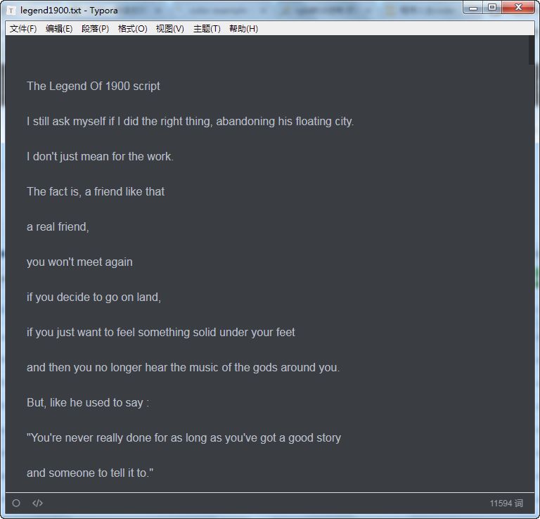 我们先绘制英文文本的词云图,因为它相对简单一些。这里以《海上钢琴师》这部电影的剧本为例。