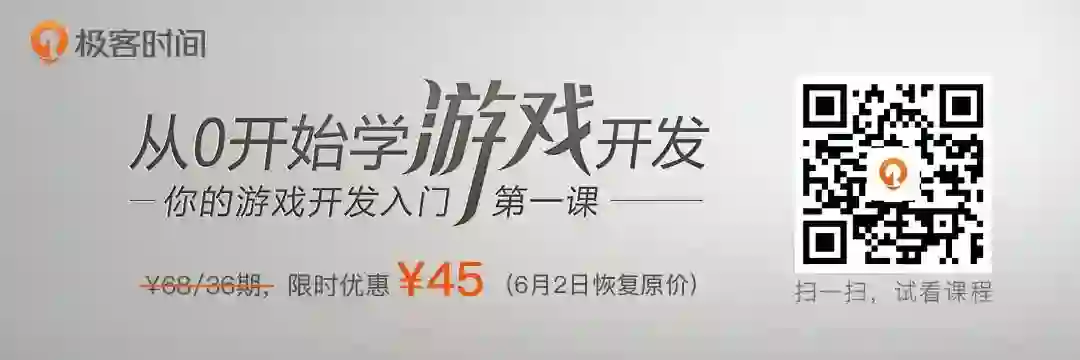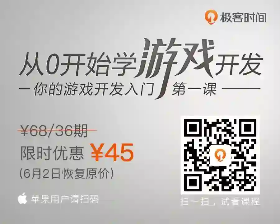 游戏行业的高回报,也吸引着越来越多的人跃跃欲试,但是成为一名专业的游戏开发之路上也暗含着无数的坑。为了帮助大家能快速入手游戏开发,我在极客时间开设了新专栏《从 0 开始学游戏开发》。我选择用最简洁最自然的 Python 语言来讲这门课,从零开始,由表及里,从语言到场景,从架构到实现,最终帮助你做出一款自己的游戏。
