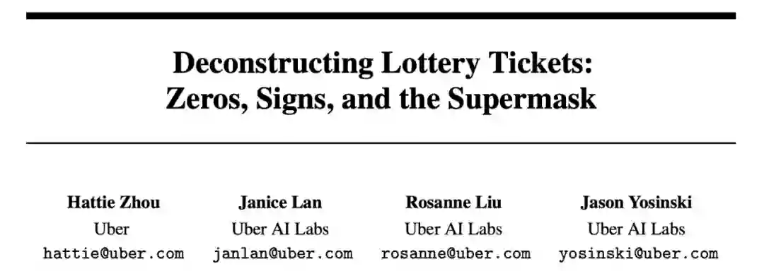 1. Cheng, Yu, et al. "A survey of model compression and acceleration for deep neural networks." arXiv preprint arXiv:1710.09282 (2017).2. Frankle, Jonathan, and Michael Carbin. "The lottery ticket hypothesis: Finding sparse, trainable neural networks." ICLR (2019).3. Zhou, Hattie, et al. "Deconstructing lottery tickets: Zeros, signs, and the supermask." arXiv preprint arXiv:1905.01067(2019).4. https://eng.uber.com/deconstructing-lottery-tickets/5. https://towardsdatascience.com/how-the-lottery-ticket-hypothesis-is-challenging-everything-we-knew-about-training-neural-networks-e56da4b0da27 作者介绍:朱梓豪,目前是中国科学院信息工程研究所的硕士研究生,主要研究方向为图神经网络、多模态机器学习、视觉对话等方向。爱好科研,喜欢分享,希望能通过机器之心和大家一起学习交流。 本文为机器之心原创,转载请联系本公众号获得授权。 ✄------------------------------------------------加入机器之心(全职记者 / 实习生):hr@jiqizhixin.com投稿或寻求报道:content@jiqizhixin.com广告 & 商务合作:bd@jiqizhixin.com
