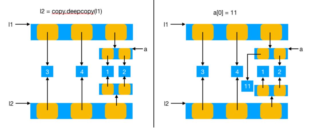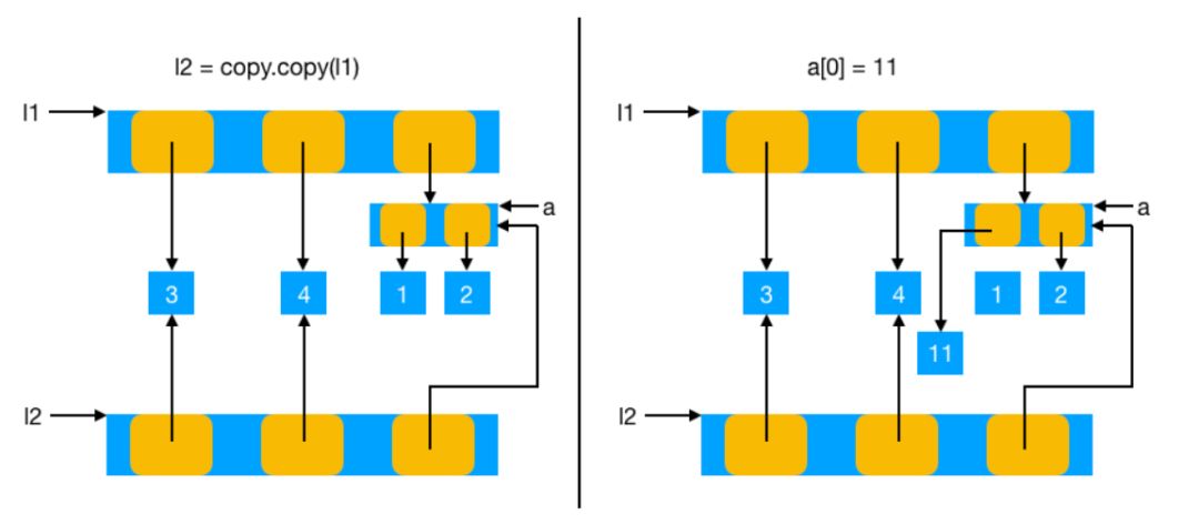 对于上边这种状况,Python还提供了另一种拷贝方式(深拷贝)来解决。