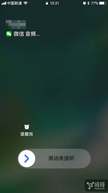 显示界面基本和电话来电显示一样,有对方微信的头像和名字,滑动解锁即可接听该视频/语音聊天,点击电源键可拒绝接听。不在锁屏界面时,接到微信的视频/语音聊天也会弹出该界面,如果在进行其他操作不想背打扰,可以在微信中的设置里,关闭“接受语音和视频聊天邀请通知”一项。当然,你如果想换铃声目前还没有这个功能,不过不排除日后微信会加入这一功能。