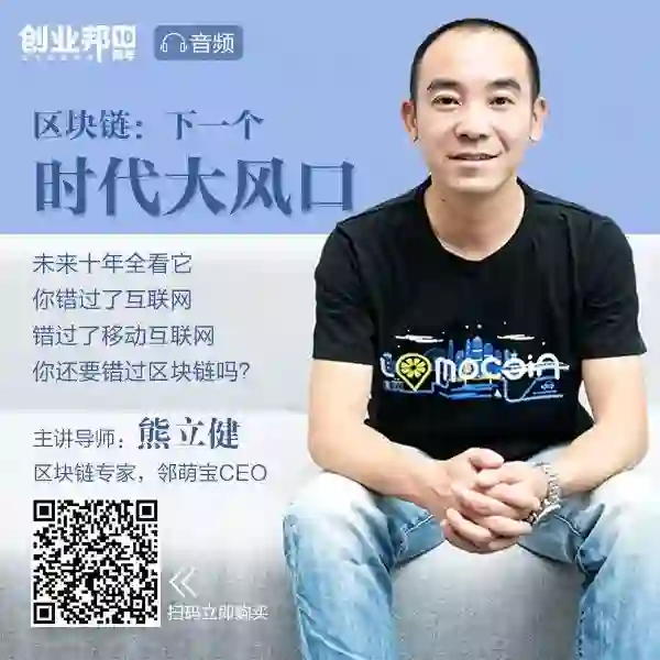 创业邦&邻萌宝合作开发了线上音频课程《区块链:下一个时代大风口》,由邻萌宝CEO,区块链专家,4年区块链及数字货币研究和商业运营经验的熊立健老师主讲,带你全面系统的学习区块链。