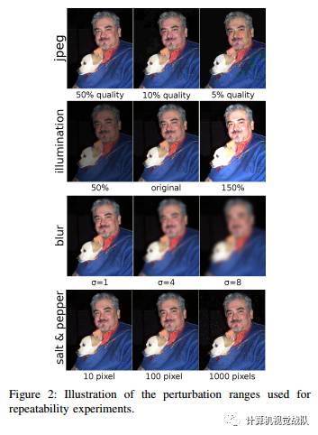 这里作者提出这样的假设:一个好的OP方法应该具有比较好的复现能力,也就是相似的图片中检索出来的object应该是具有一致性的。验证的方法是对PASCAL的图片做了各种扰动(如Figure 2),然后看是否还能检测出来相同的object的recall是多少,根据IoU的严格与否能够得到一条曲线,最后计算曲线下面积得到repeatability。