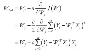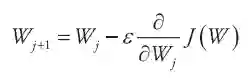其中,ε称为学习率(Learning Rate),j表示W的迭代次数,将J (W )代入上式得到: