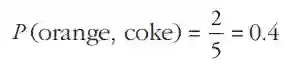 计算示例2:计算在所有的流水交易中“既有orange又有coke的支持度”,即P(orange, coke),从上述的购物流水数据中可以发现,总计有5条交易记录(T1、T2、T3、T4、T5),既有orange又有coke的记录有两条(T1、T4),因此