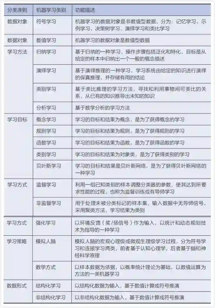 事实上,具体到每一个机器学习方法,根据上述不同的分类准则,可能会归属到一个或多个类别中。