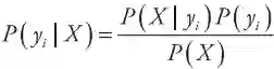 朴素贝叶斯分类的出发点是:对于给出的待分类项,求解在此项出现的条件下各个类别出现的概率,哪个最大,就认为此待分类项属于哪个类别。为了便于描述,将事件A表示为特征属性X (x1, x2, …, xn ),将事件B表示类标属性Y (y1, y2, …, ym ),则朴素贝叶斯分类问题可以描述为: