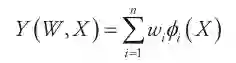 w1x1 + w2x2 + … + wn xn,所谓的线性是对参数W而言的,并非一定是输入X (x1, x2, …, xn )的线性函数,比如可以通过一系列的基函数ϕi (.)对输入