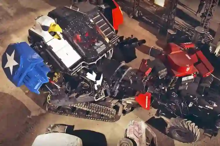 前两回合,双方打成平手,最后一局,决定胜负至关重要。Eagle Prime 掏出一把电锯来解散 Suidobashi Heavy Industry 的劫匪,结束屠杀。(来源:36Kr)
