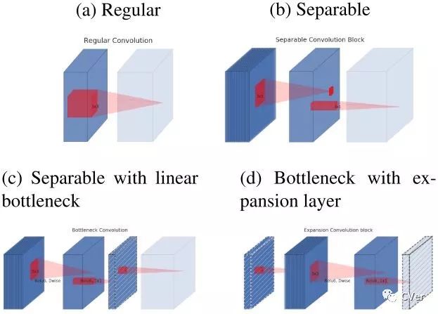 都采用了Depth-wise Convolution和Point-wise Convolution组合的方式(Depth-wise Separable Convolution)来提取特征。该操作可以成倍减少时间复杂度和空间复杂度。