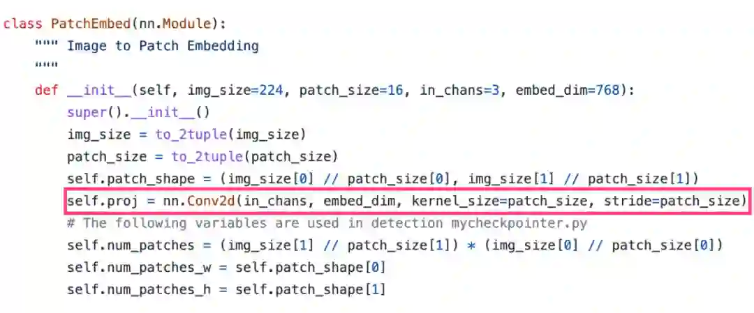 只需要将 Patch 的像素全部拉平就可以得到对应的图像特征(特征维度为 P),为了和语义的特征对齐(比如常见的 BERT 模型,语义特征维度为 768),那么需要增加一层线性变换使得语义特征与图像特征的维度一致。