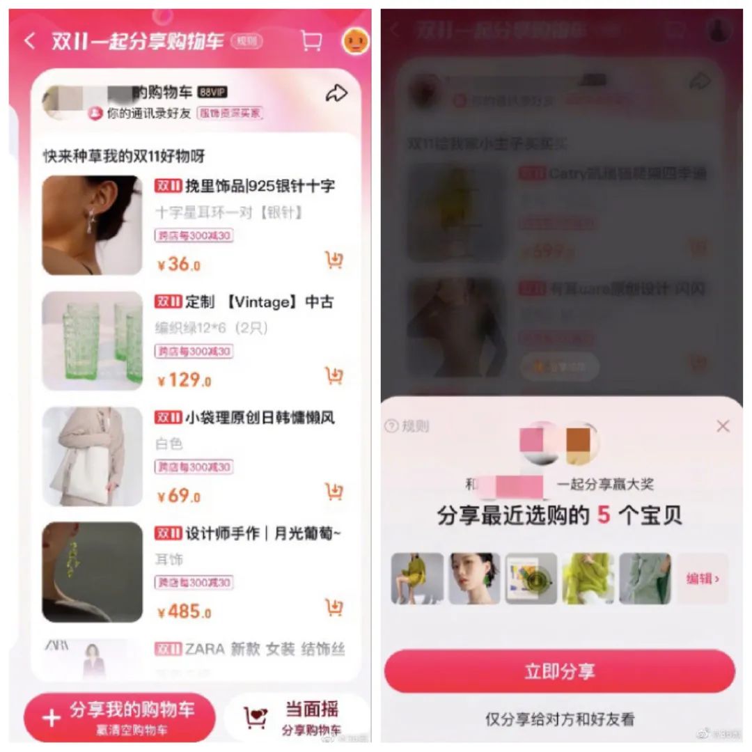 淘宝内测购物车分享功能