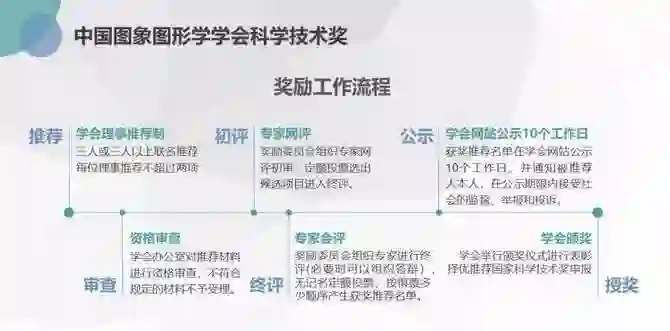 中国图象图形学学会理事3人或3人以上联名推荐,每位理事推荐项目不超过2项。