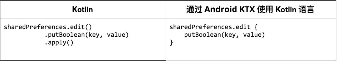 编辑 SharedPreferences 设置是一个非常常见的用例。通过 Android KTX 编写的代码更为简短而且读写起来也更为自然。