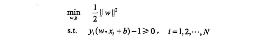 线性可分支持向量机。当训练数据线性可分时,通过硬间隔最大化,学习到的一个线性分类器。