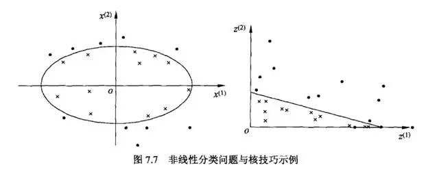 非线性支持向量机。当训练数据线性不可分,通过使用核技巧及软间隔最大化,学习非线性支持向量机。