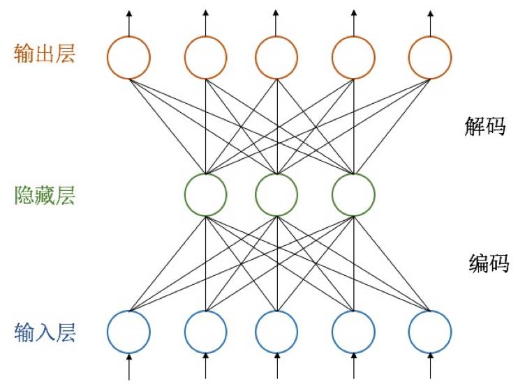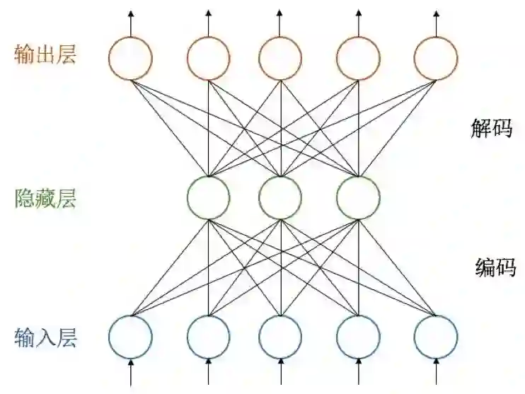 “筑巢”的方法可大致分为无监督和有监督两类。其中,无监督是指只利用数据中的属性信息,而不使用标签信息。它一般是通过最小化重构误差来学习特征的表示空间,如下图所示的自编码器(autoencoder)所示,通过最小化输入和输出之间的误差,来训练该神经网络,最后使用隐藏层及其相关联的参数来代表所要学习的特征表示。除自编码器外,还有流形学习(manifold learning)、稀疏编码(sparse coding)等方法。