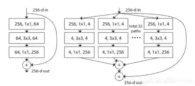 这种策略揭示了一个新的维度,作为除深度和宽度维度以外的一个重要因素,作者将其命名为“基数”。容量增加时,增加基数比变深或变宽更有效。因此,它的准确性要高于ResNets和Wide