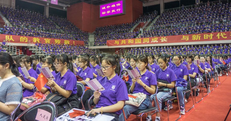 细雨悄然淋湿了夏日的暑气。今天2019级本科新生“开学典礼暨军训动员大会”在方肇周体育馆举行。在这里,小蓝鲸们迎来了自己的“开学第一课”。