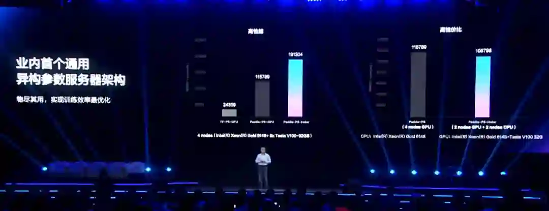 在这种背景下,飞桨推出了首个异构服务器训练架构,实现了异构硬件的自由混布,能够实现数据的独立存取传输,大幅提高了数据吞吐量。此外,它还通过流水线机制提高了训练速度,通过多种通信策略提高了带宽的利用率。