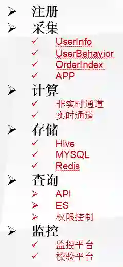 “User Profile”作为大数据的核心组成部分,由典型的大数据模型构成。包括注册、采集、计算、存储、查询、监控六大功能。