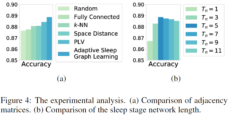 为了进一步研究自适应睡眠图学习的有效性,我们设计了五个固定的邻接矩阵与之进行比较。