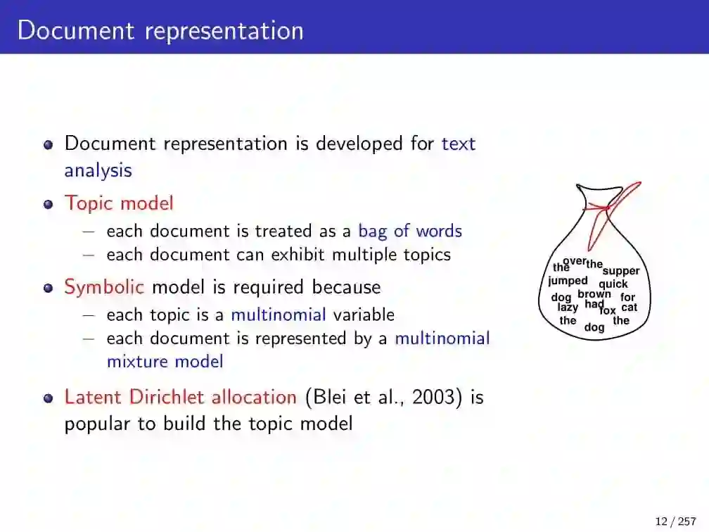 变分推断和采样被提出解决解决复杂模型的优化问题。词和句子的嵌入、聚类和联合聚类被语言和语义约束合并。针对深度贝叶斯挖掘、搜索、学习和理解中的不同问题,一系列的案例研究、任务和应用被提出。最后,教程指出一些未来研究的方向和展望。教程旨在向初学者介绍深度贝叶斯学习中的主要主题,激发和解释它对数据挖掘和自然语言理解正在浮现的重要性,并提出一种结合不同的机器学习工作的新的综合方法。
