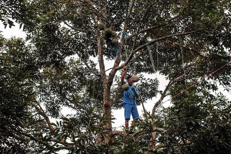 目前,马来西亚的4.55万个榴莲种植户被隔绝于中国的鲜榴莲市场之外,只能出口冰冻果肉。这是因为,他们通常只是等待果实成熟并掉到地上,而不是主动爬上树采摘。