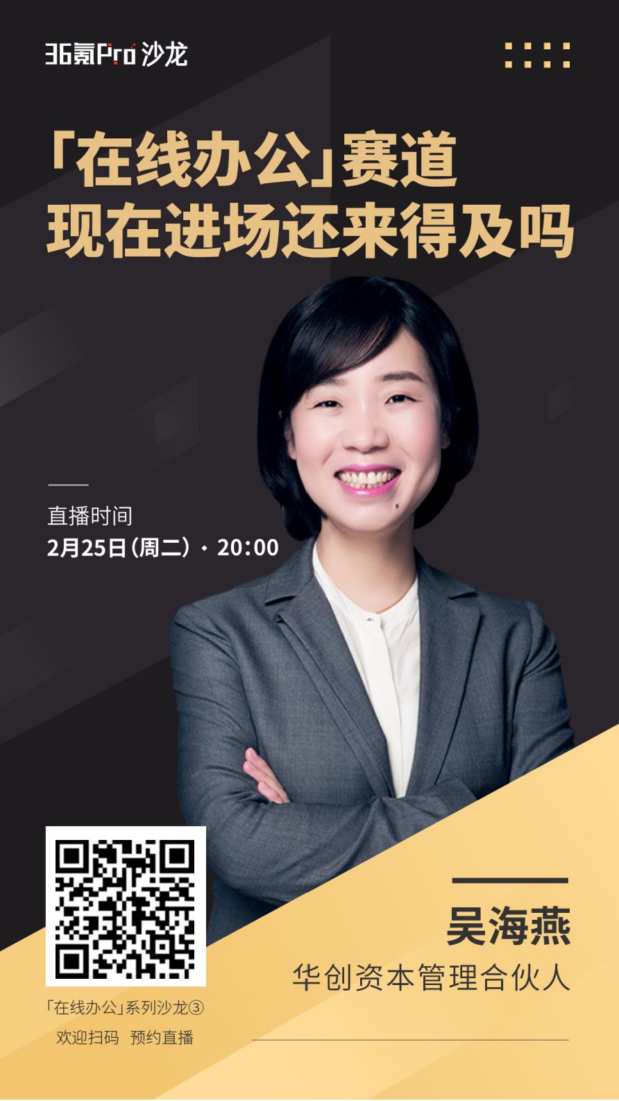 华创资本吴海燕:「在线办公」赛道,现在入场还来得及吗? | 今晚 8 点直播