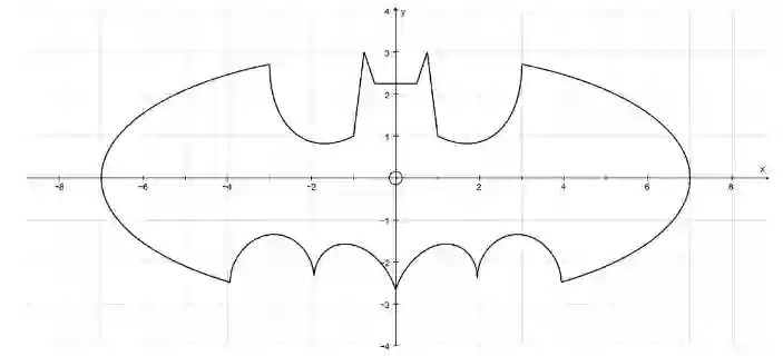 现在,想象一下我们想要计算蝙蝠侠曲线方程(Batman Equation)绘制的形状的面积: